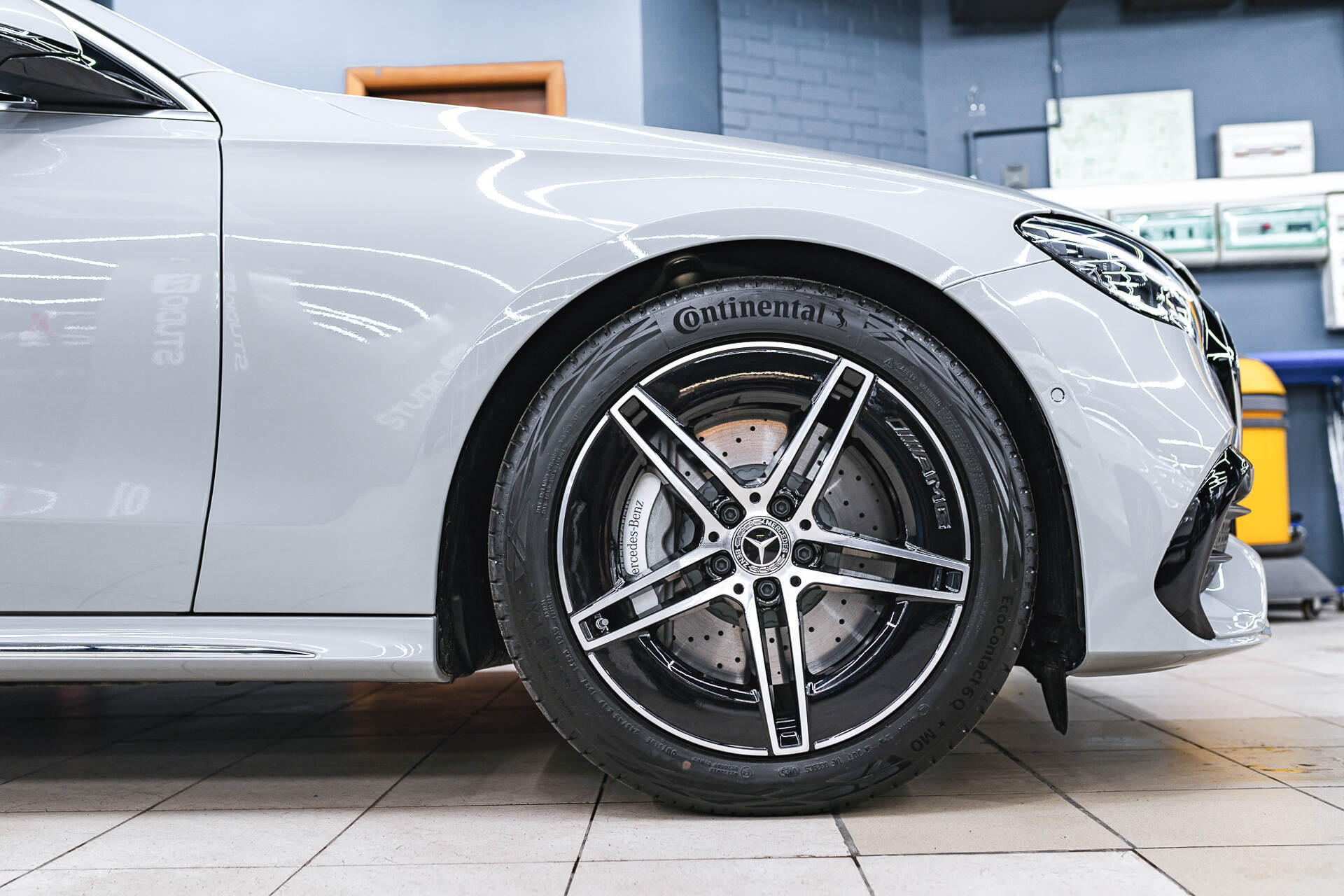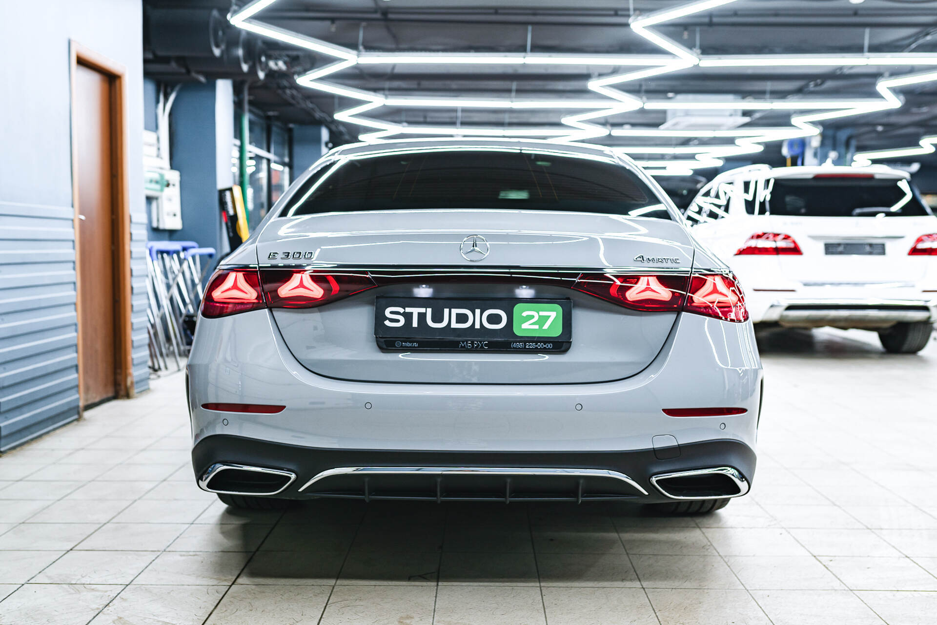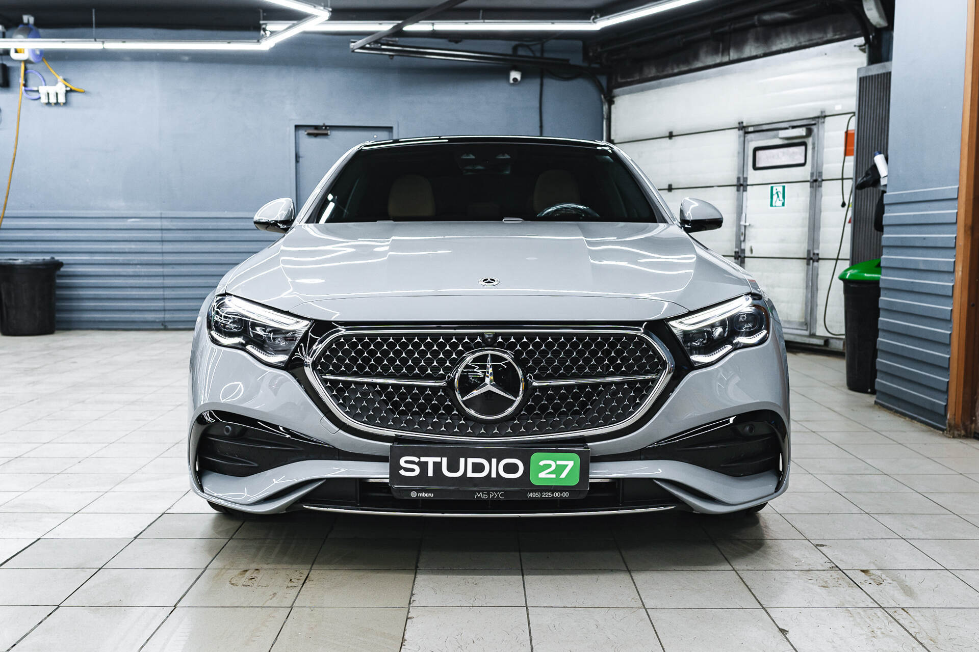 Водителям, желающим защитить автомобиль от внешних факторов (пескоструй, щебенка и иной мусор), предлагается в нашей автостудии оклейка кузова полиуретановой пленкой, и именно с этой целью к нам обратился владелец Mercedes-Benz E W214. Задача заключалась в оклейке наиболее уязвимых зон кузова (так называемая отбойная часть), подверженных повышенному риску повреждений. В процессе эксплуатации автомобиль постоянно сталкивается с механическими воздействиями — абразивными частицами и мелким камешками, что со временем приводит к образованию царапин и потертостей на лакокрасочном покрытии. Учитывая премиальный статус автомобиля, стремление владельца обеспечить максимальную защиту своего транспортного средства выглядит совершенно закономерным.