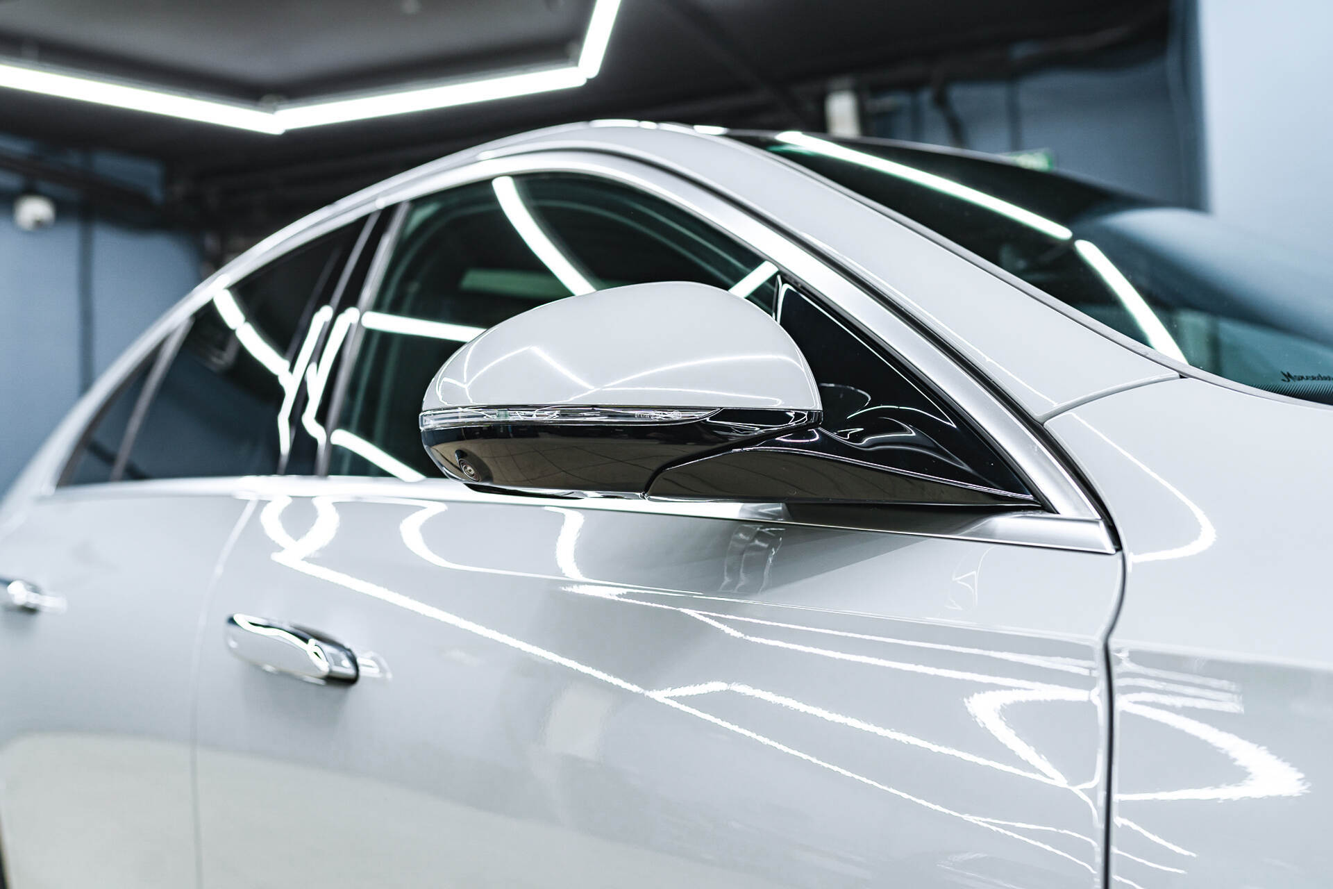 Работа завершена, и защитное покрытие остается совершенно незаметным — полиуретановая пленка Spectroll Premium сохраняет идеальную прозрачность на протяжении всего срока службы. В отличие от дешевых аналогов, подверженных пожелтению, материал Spectroll гарантирует стабильность внешнего вида, обеспечивая надежную защиту кузова Mercedes-Benz E W214 от абразивного воздействия песка, камней и дорожных загрязнений. Дополнительным преимуществом является возможность полировки защищенных поверхностей — многослойная структура пленки обладает достаточным ресурсом для многократного восстановления блеска без ущерба для защитных свойств.