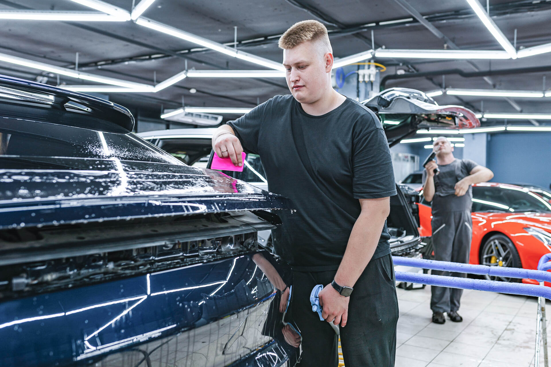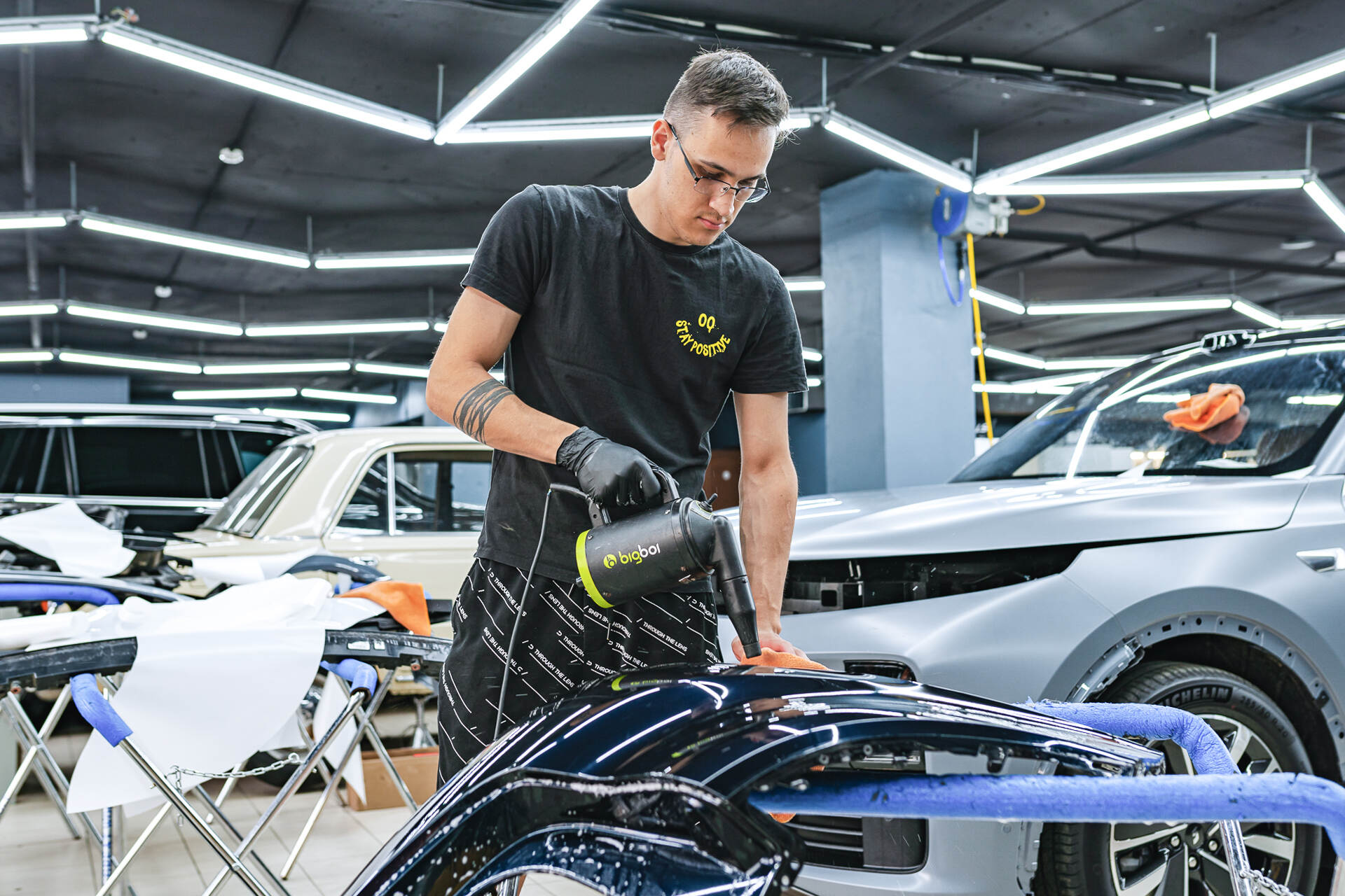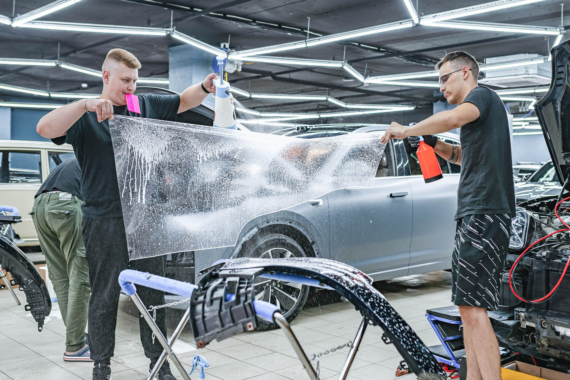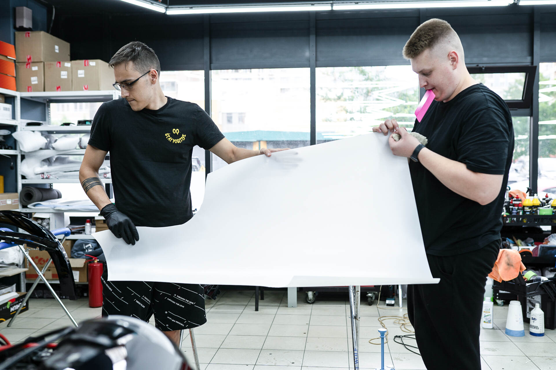 Полная оклейка Porsche Cayenne полиуретаном Spectroll Premium требует трехдневной кропотливой работы и высочайшей квалификации мастера, поэтому обращение в нашу специализированную детейлинг-студию — залог успеха. Только профессиональный монтаж плёнки на кузов гарантирует идеальную посадку материала и его устойчивость к дорожным нагрузкам, чего невозможно добиться в кустарных условиях. Выбирая нашу автостудию, вы получаете не только качественное исполнение любых задач, но и полную гарантию на выполненные работы. Тщательный подход к процессу обеспечивает долговечность полиуретанового покрытия и сохраняет эстетику автомобиля на годы вперед.