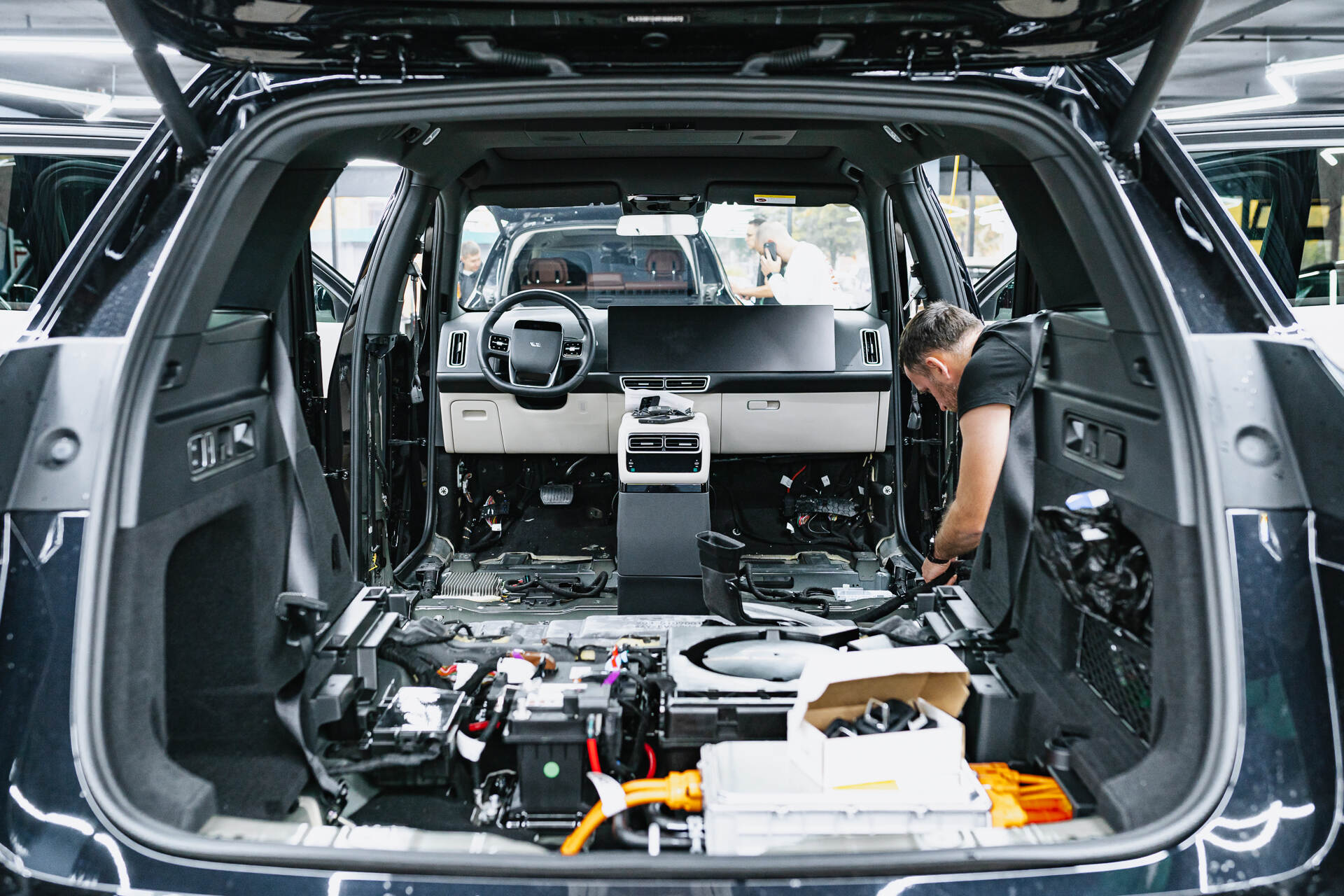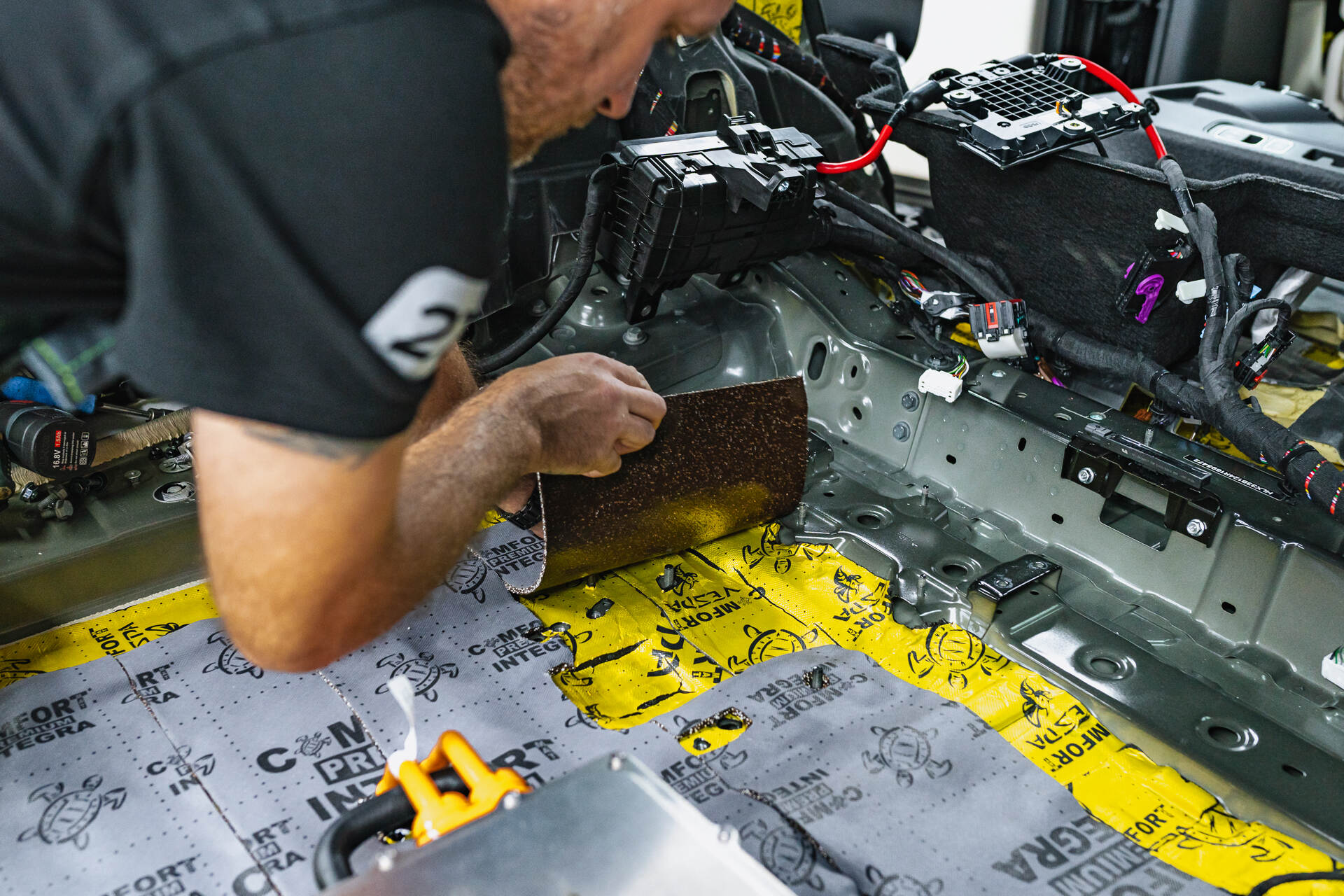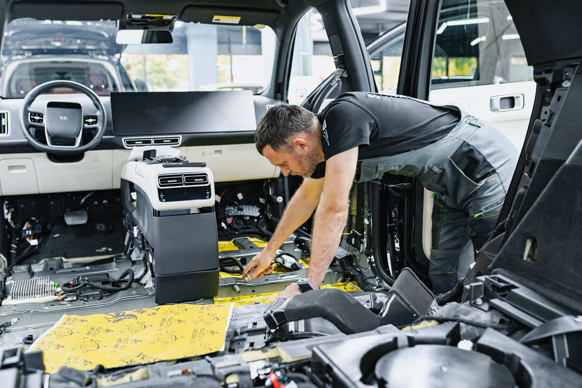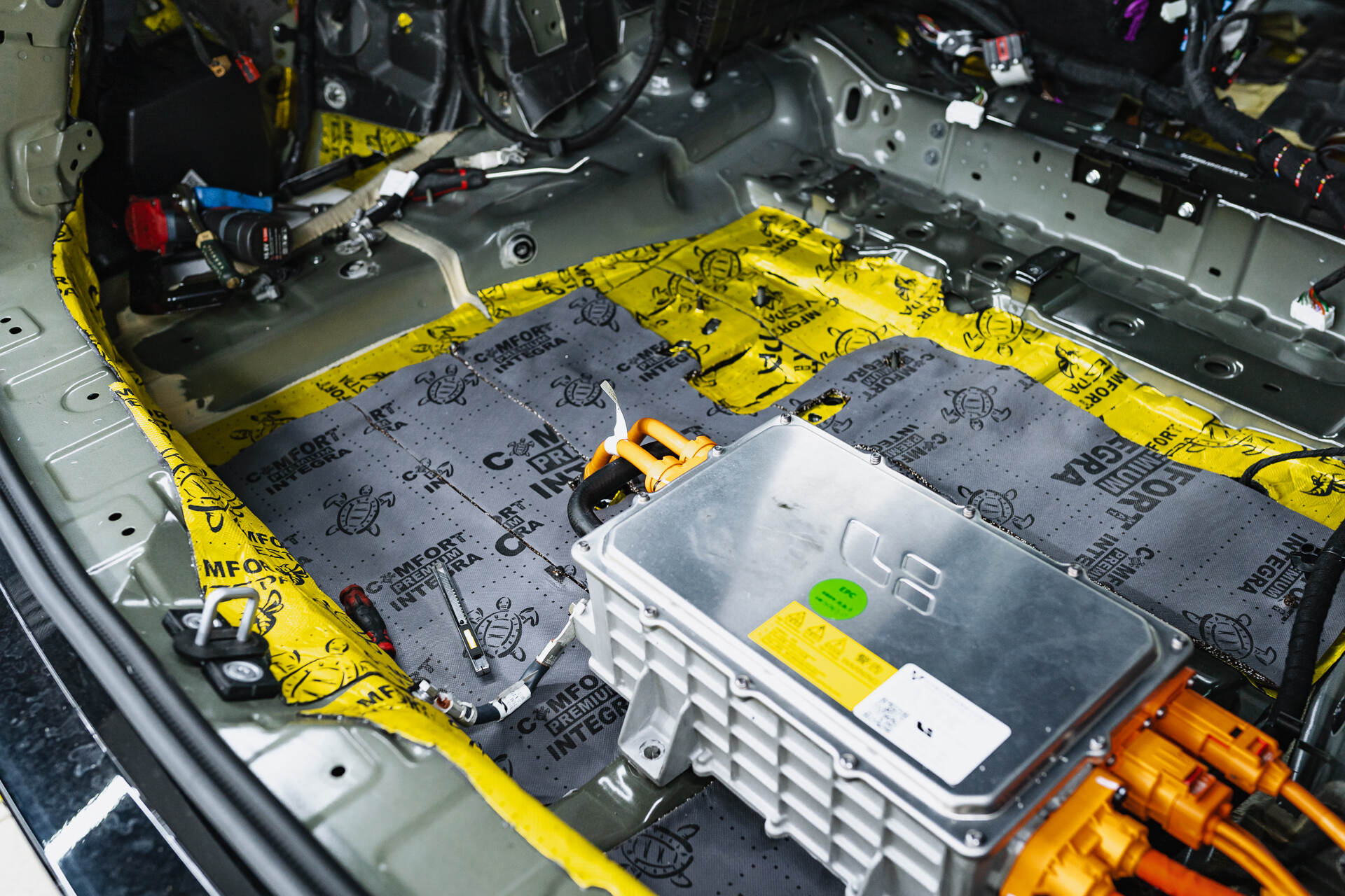 Процесс комплексной шумоизоляции Lixiang L7 стартует с работы над колёсными арками. Мы демонтируем колёса и подкрылки, после чего укладываем высококачественный вибропласт в два плотных слоя, тщательно подгоняя материал и прокатывая его специальным роликом для максимального прилегания. Шумоизоляция салона и дверей выполняется параллельно, для этого мы аккуратно разбираем салон: снимаем дверные карты, убираем кресла и элементы обивки. Затем, по аналогии с арками, укладываем листы вибропласта на подготовленные поверхности. Поверх вибропласта мы наносим слой вспененного бипласта для дополнительного поглощения шумов. После завершения всех работ салон собирается в обратном порядке, и автомобиль возвращается к своему первоначальному виду, но с принципиально новым уровнем акустического комфорта.