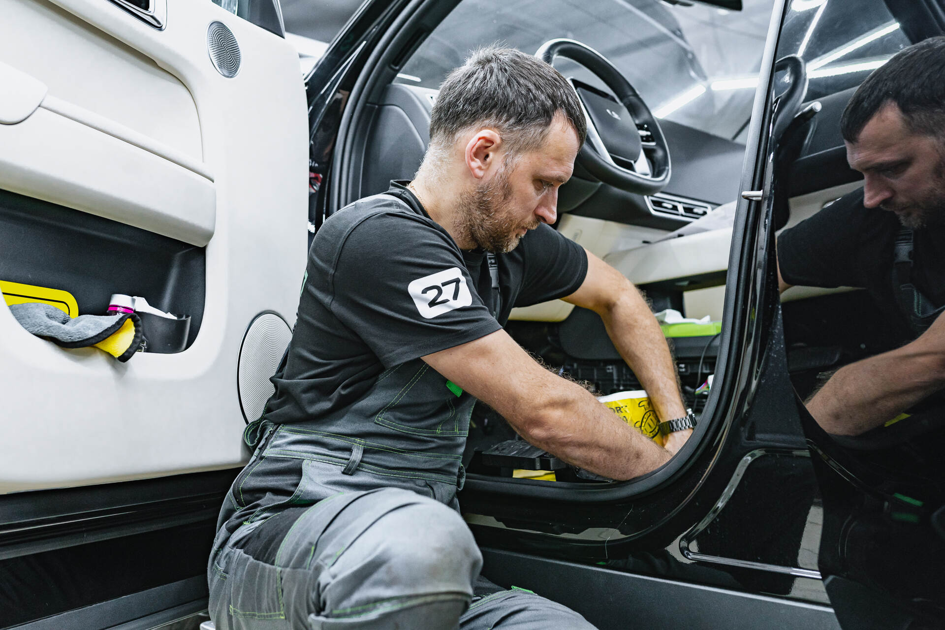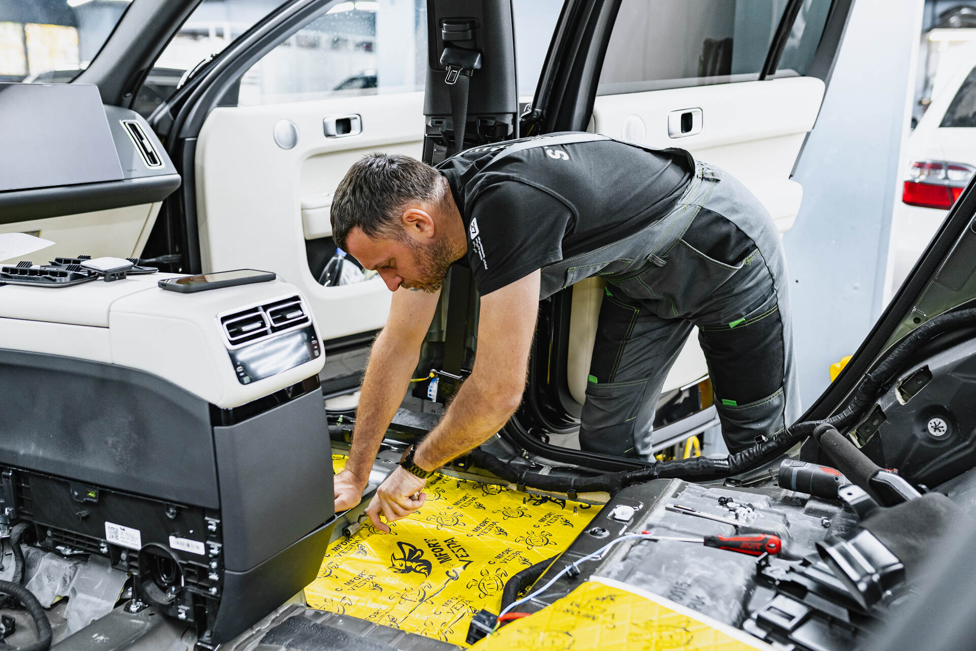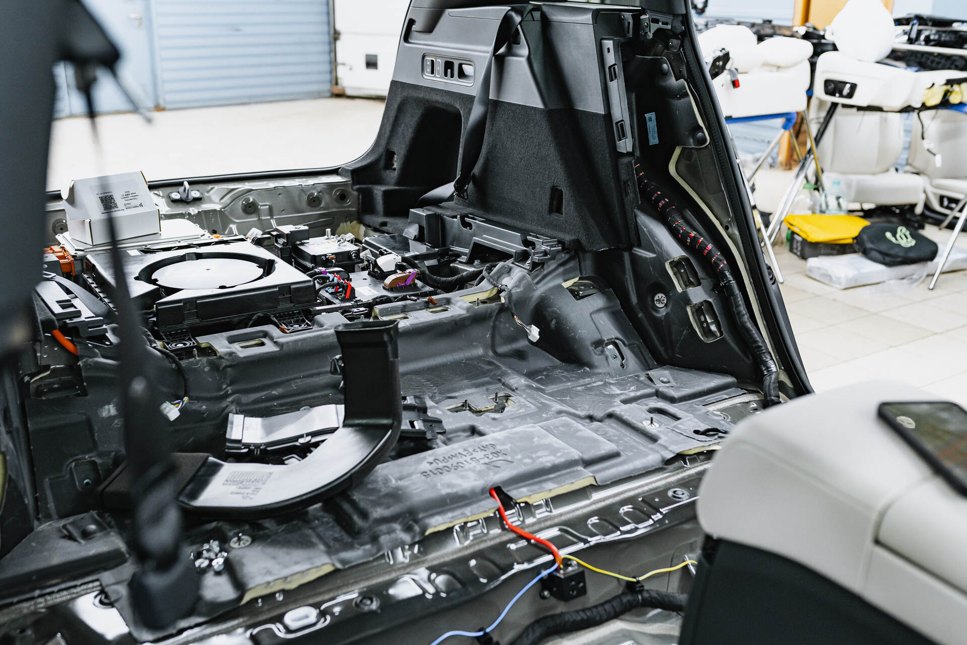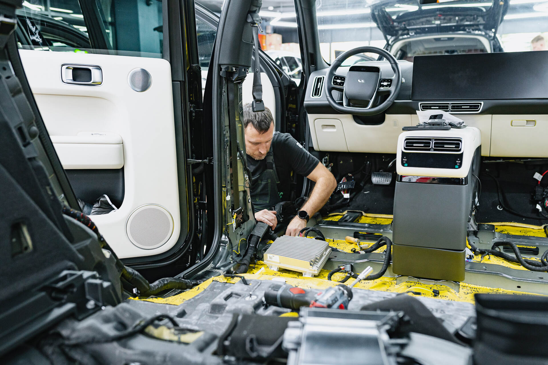 Мы можем выполнить шумоизоляцию не всего автомобиля, а лишь определённых зон, например, только колёсных арок или дверей – выбор всегда остаётся за клиентом. Однако стоит отметить, что наиболее выраженный эффект достигается именно при комплексной шумке всего салона. В этом случае мы полностью разбираем внутреннюю отделку, демонтируем сиденья и только затем приступаем к улучшению акустического комфорта. В работе мы используем исключительно качественные материалы: для шумоизоляции применяются многослойные материалы из вибропласта и вспененного бипласта. Для выполнения полной шумоизоляции Lixiang L7 требуется значительное время, поэтому мы обычно планируем работу на два-три дня, согласовывая точные сроки индивидуально с каждым клиентом. Мы действуем предельно аккуратно, поскольку работаем с современными и дорогими автомобилями, и любая небрежность здесь недопустима. Наша студия дорожит доверием клиентов, поэтому мы не торопимся и строго следуем отработанной технологии. Такой подход позволяет нам достигать действительно выдающихся результатов в области детейлинга.