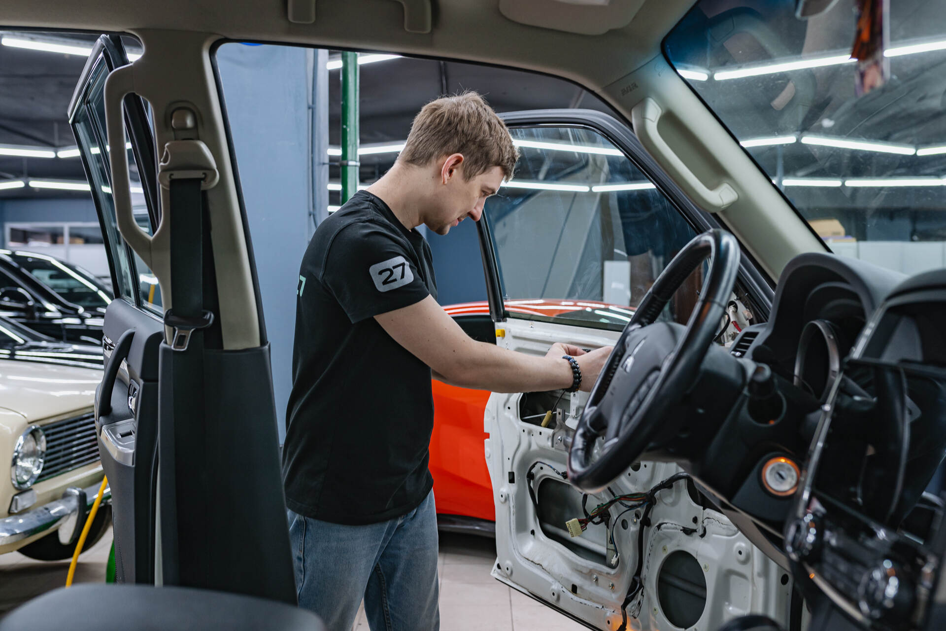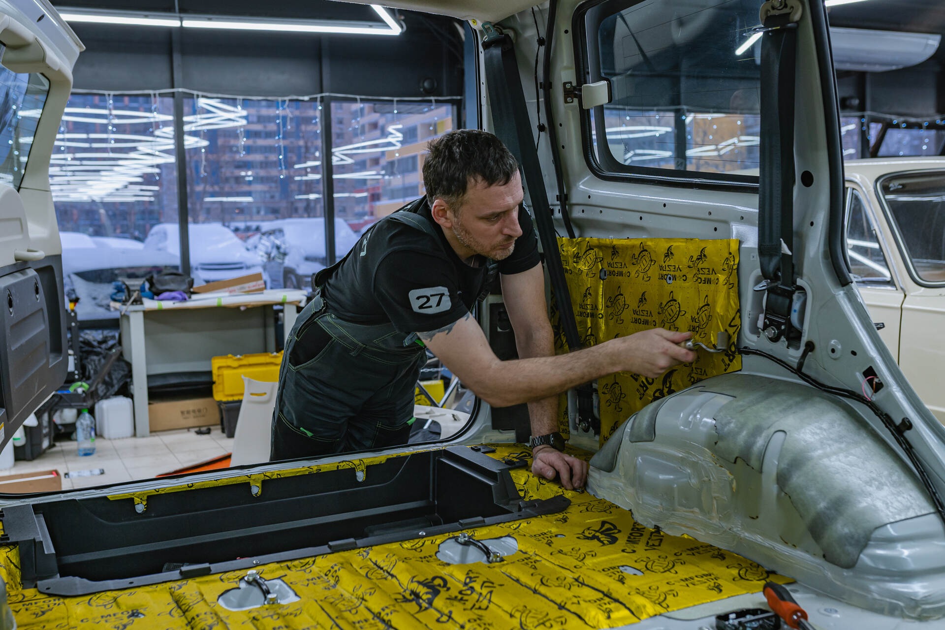 Комплексный подход при шумке гарантирует превосходный результат: в салоне воцаряется тишина, а изоляция арок эффективно гасит дорожные вибрации. Это кардинально меняет восприятие длительных поездок, особенно по гравийным или щебеночным загородным трассам. Мы предлагаем как локальную шумоизоляцию отдельных зон, например дверей или арок, так и полную шумоизоляцию для достижения максимального эффекта. В последнем случае мастера полностью разбирают салона и демонтируют кресла, проводя масштабную работу над акустическим совершенством автомобиля.