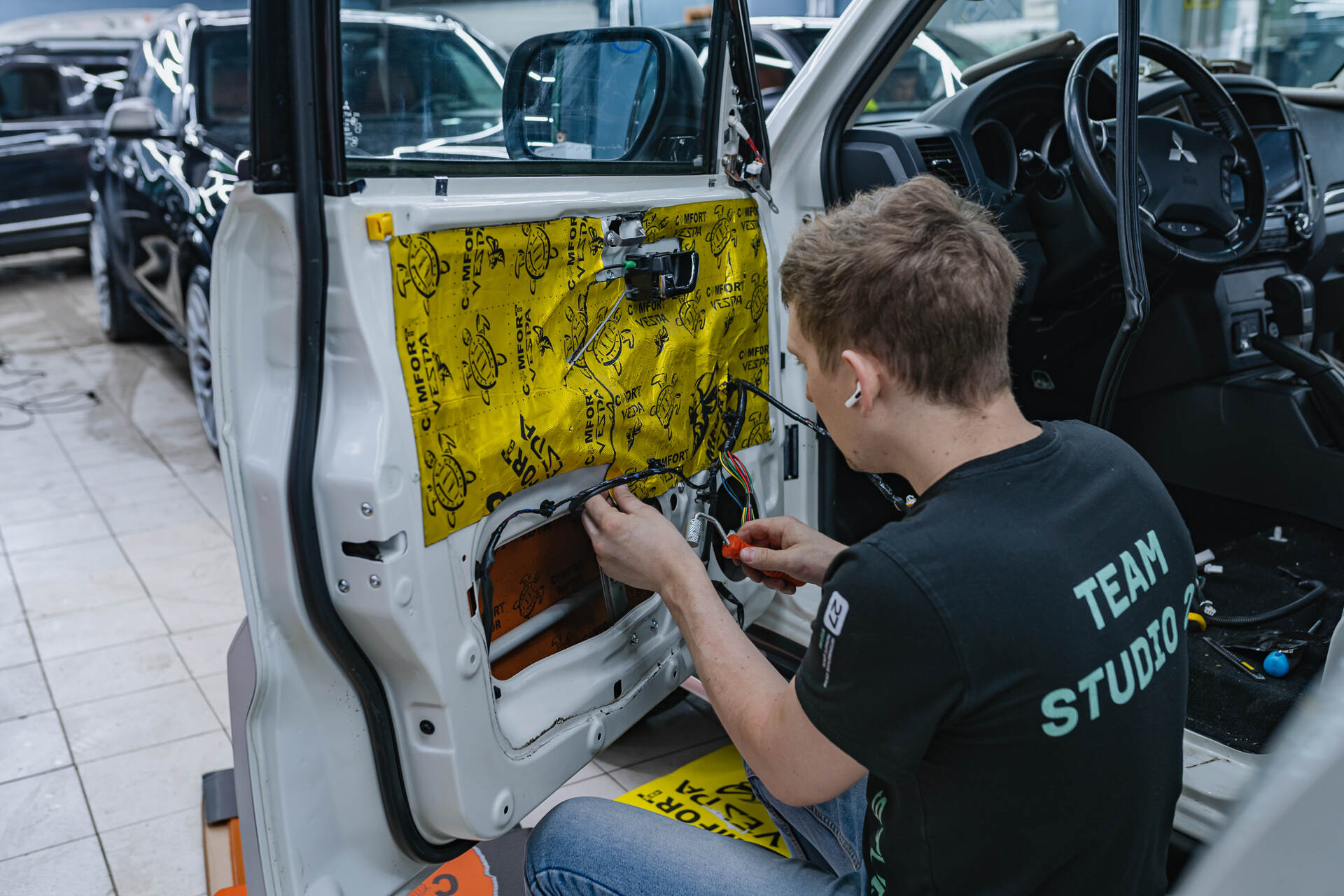 В работе мы применяем высококлассные материалы, укладывая слои вибропласта и вспененного бипласта друг на друга для максимального эффекта. Полная шумоизоляция Mitsubishi Pajero IV — процесс трудоемкий, требующий не менее трех дней предельно аккуратной работы с полным разбором интерьера. Наша студия специализируется на обслуживании премиального сегмента автомобилей, поэтому мы подходим к делу со всей ответственностью и строго соблюдаем технологический цикл. Отсутствие спешки и четкое следование регламентам позволяют нам гарантировать владельцу безупречный результат и эталонный акустический комфорт в салоне.