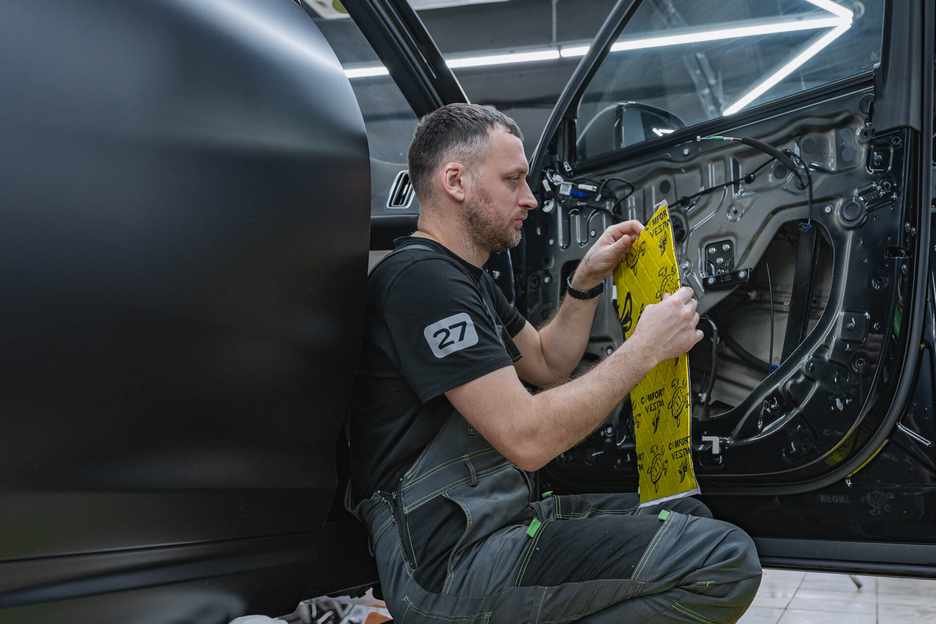 Шумоизоляция дверей Лисян Л7 2025 вспененным бипластом.