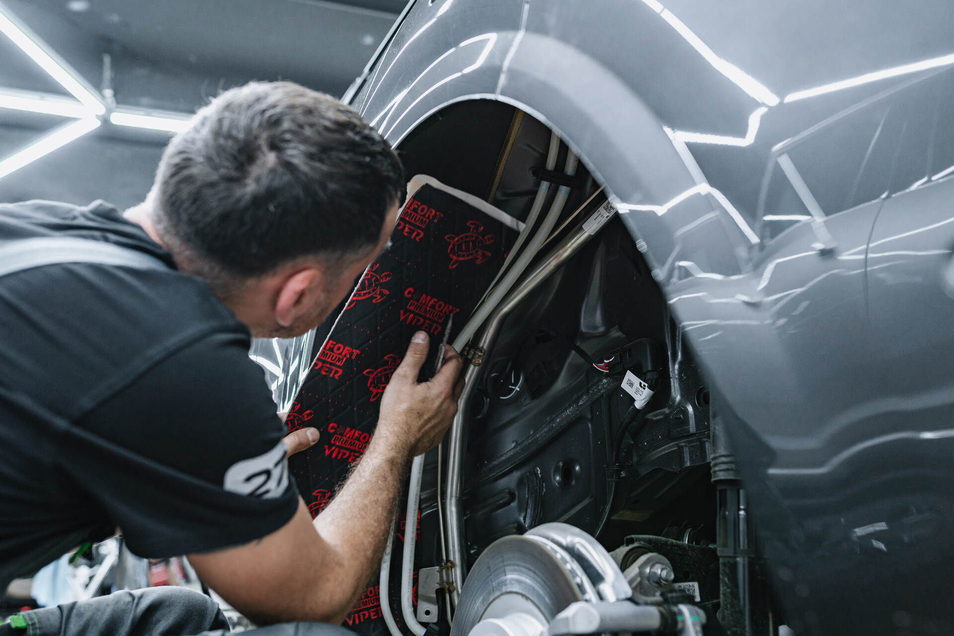 Для выполнения работ по шумке мы применяем исключительно премиальные компоненты: вибропласт используется для создания базового демпфирующего слоя, а бипласт, изготовленный из полиуретана с плотной структурой, выступает в роли ключевого поглотителя акустических волн. Наша технология подразумевает нанесение двухслойного покрытия, которое не только эффективно гасит структурные вибрации кузова, но и выполняет тройную функцию: оно подавляет резонанс, поглощает звуковые частоты и значительно улучшает термоизоляцию. Завершающим этапом становится монтаж специализированной мембраны, которая способна нейтрализовать до 80% внешних шумов. Этот мощный барьер создает эффект герметичной капсулы, максимально минимизируя проникновение посторонних звуков в салон. Результат становится ощутимым даже при движении на высоких скоростях — начиная от 100 км/ч и выше водитель может наслаждаться тишиной, а вибрации становятся практически незаметными. Дополнительным бонусом является улучшенная акустика аудиосистемы и более стабильный микроклимат в салоне в любое время года.