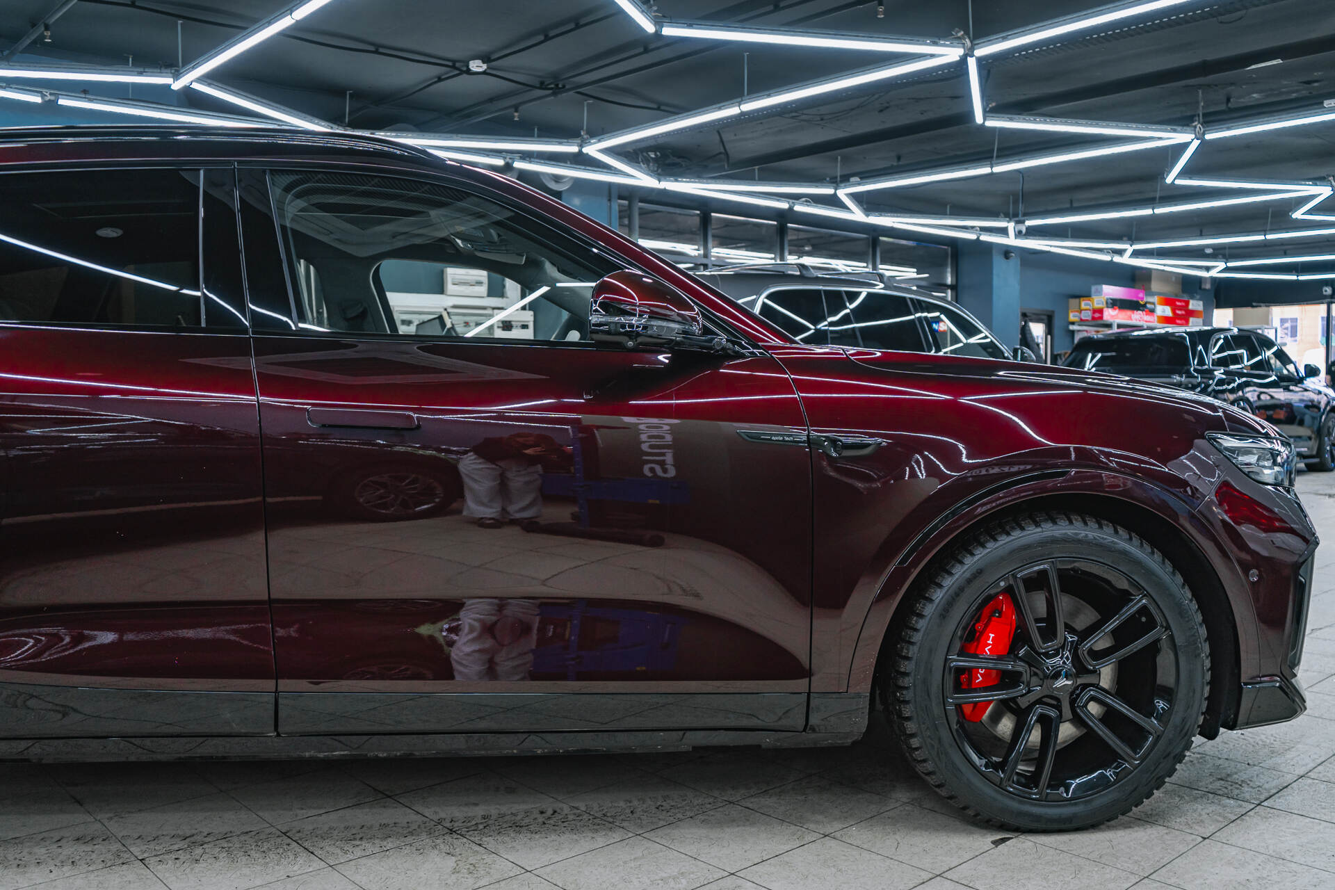 Вторым этапом мы монтируем слой материала с особой структурой, плотно прижимая его валиком для формирования монолитного покрытия без воздушных пустот. Такая тщательная прокатка максимально усиливает виброгасящий эффект всей системы; следом наносится мембранное полотно, которое надежно фиксирует предыдущие слои и окончательно нейтрализует остаточный резонанс. В результате арки превращаются в эффективный многослойный барьер, преграждающий путь дорожному шуму. Благодаря отсутствию стыков и герметичности защиты, шумка арок гарантирует тишину и комфорт в салоне даже на грубом дорожном покрытии. Результатом работ по шумоизоляции арок Voyah Free стал комфорт при поездках, а также снижение внешних шумов, что в некотором роде создает в салоне эффект звукового вакуума, полностью отсекая грохот дороги и свист ветра. Помимо акустического комфорта, материалы служат отличным термощитом, помогая салону дольше удерживать тепло в зимний период. На любых скоростях водитель и пассажиры наслаждаются безупречной тишиной и чистым звучанием музыки без посторонних вибраций, что и является залогом качественной шумоизоляции арок.