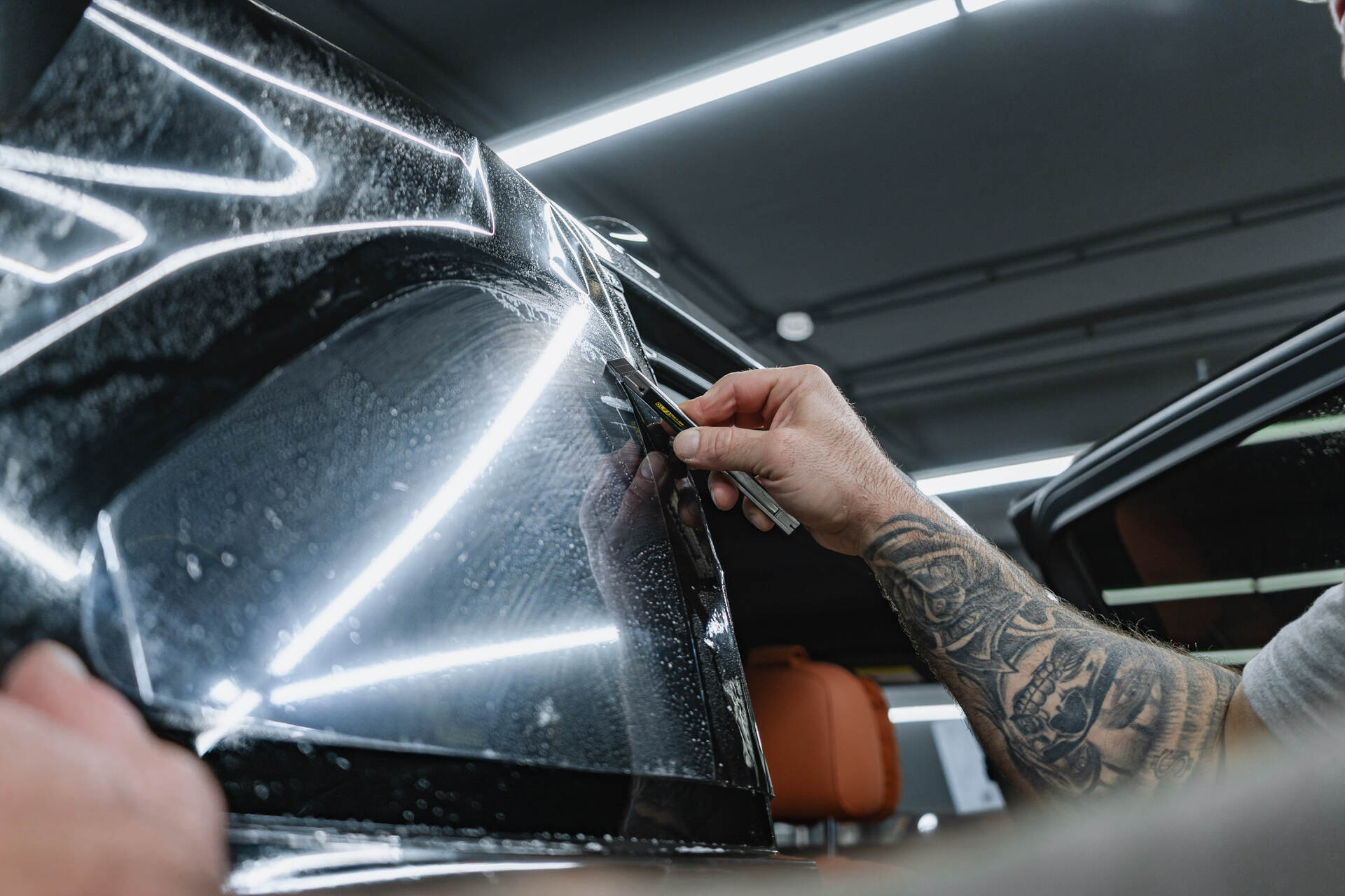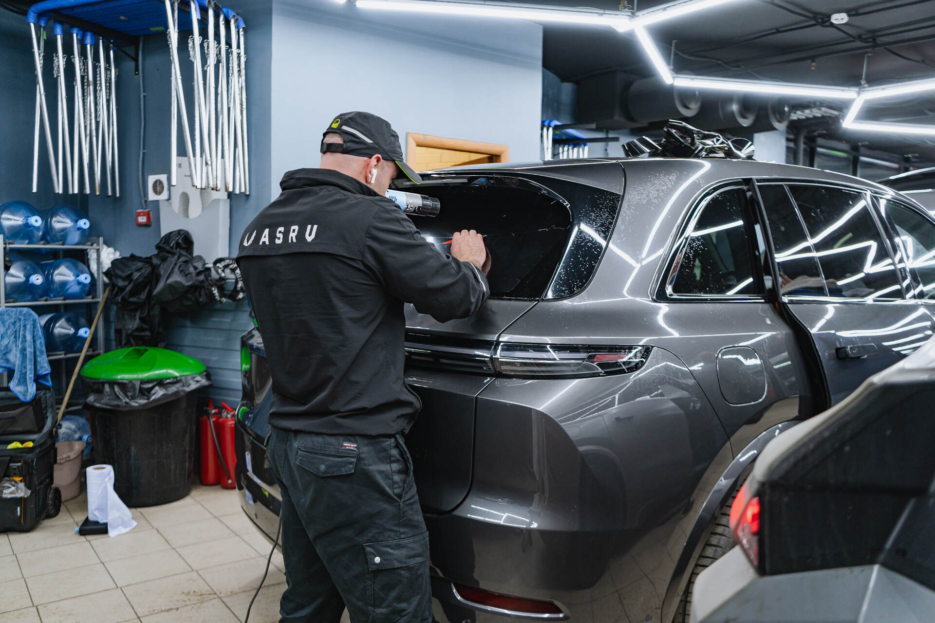 В процессе нанесения тонировочной плёнки на задние стёкла Lixiang L7 материал необходимо постоянно и с нажимом разглаживать ракелем, что позволяет полностью вытеснить из-под него излишки влаги. Остаточная влага окончательно испарится в течение четырёх дней после завершения работ. В этот период крайне важно не опускать боковые стёкла, иначе можно легко нарушить целостность и адгезию плёнки. На заключительном этапе тонированные стёкла прогреваются промышленным феном для фиксации результата, после чего автомобиль готов к возвращению владельцу. Теперь в салон будет проникать значительно меньше солнечных лучей, что благоприятно скажется на комфорте и самочувствии водителя и пассажиров.