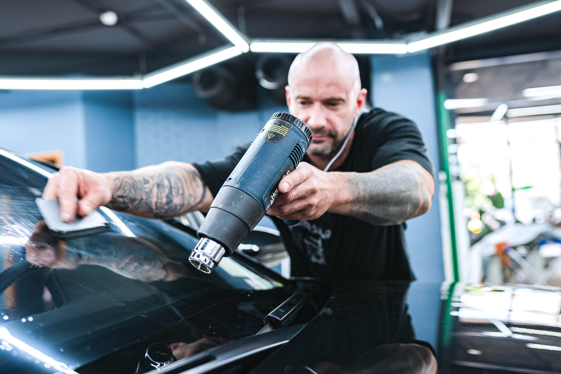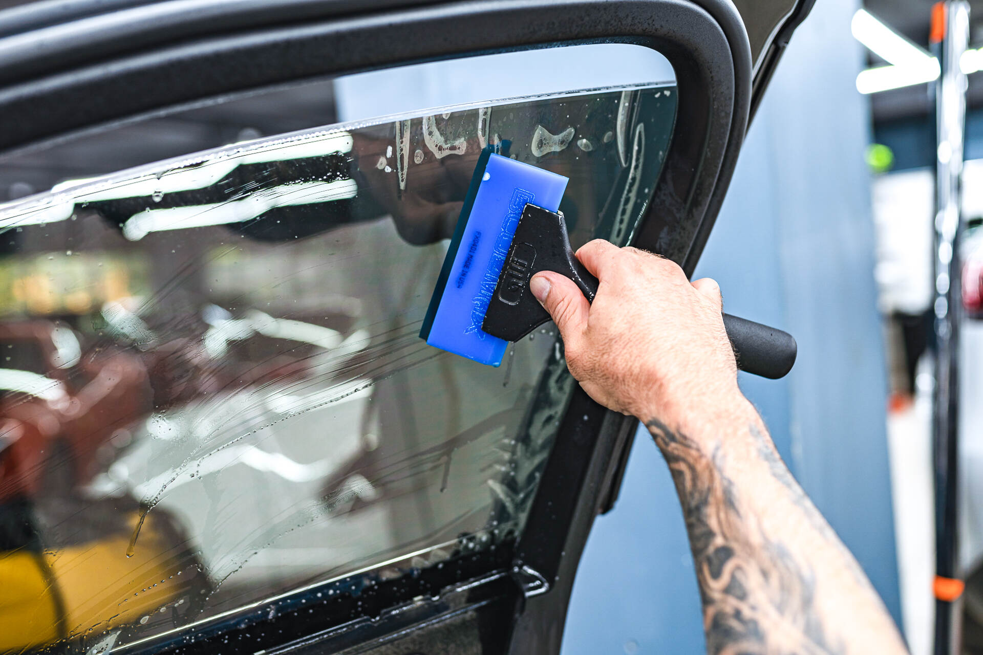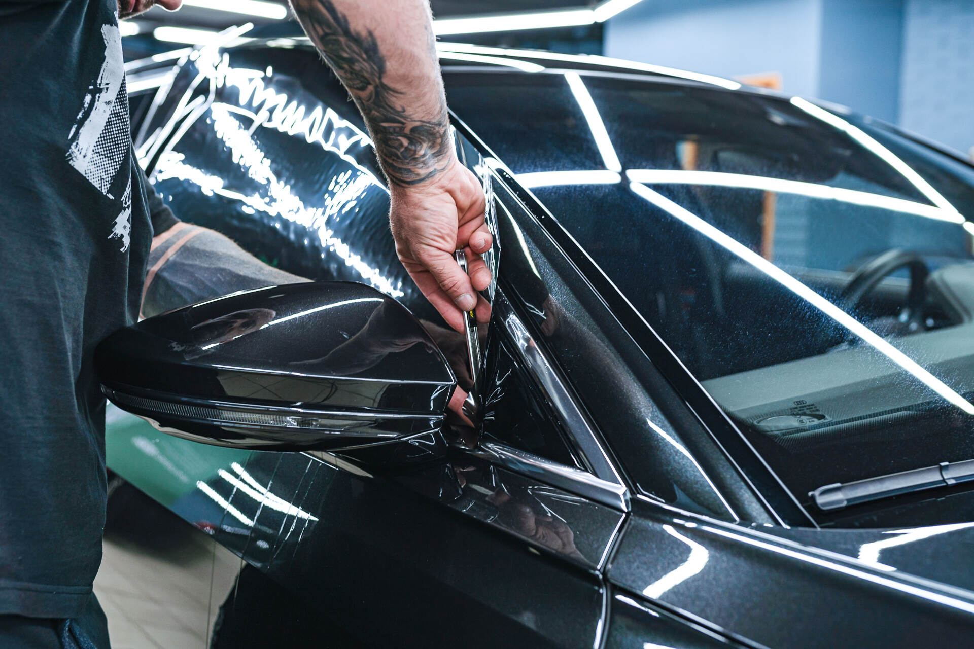 Процесс тонирования передних стекол Audi A8 занимает в среднем от трёх до шести часов — наши специалисты сочетают в работе оперативность и безупречное качество. Работы начинаются с тщательной мойки и обезжиривания стеклянных поверхностей, после чего подготавливается сам материал. Из рулона с пленкой выкраиваются три куска для боковых и лобового стекол, которые в самом начале работы размещаются с внешней стороны для корректировки размеров лезвием и термической обработки промышленным феном. Подготовленные элементы обрабатываются мыльным раствором и наносятся на стёкла изнутри салона – эта процедура требует высокой точности — любая ошибка может привести к порче дорогостоящего материала, однако опыт наших мастеров гарантирует безупречный результат, что подтверждается доверием к нашей компании владельцев новых и премиальных автомобилей. В процессе нанесения тонировочная пленка тщательно выравнивается ракелем, после чего стекла прогреваются строительным феном. Термическая обработка активирует адгезивные свойства материала, обеспечивая его полное слияние с стеклянной поверхностью. Важным условием является не опускать-поднимать боковые стёкла в течение четырех дней с момент завершения работы — этот период необходим для полной полимеризации пленки LLumar. В дальнейшем эксплуатация подъемника стекол будет абсолютно безопасной для тонировочного покрытия. Хотя полностью затонированный автомобиль Audi A8 приобретает солидный внешний вид, главным преимуществом остается практическая польза — снижение интенсивности солнечного излучения в салоне и создание комфортных условий для всех пассажиров транспортного средства.