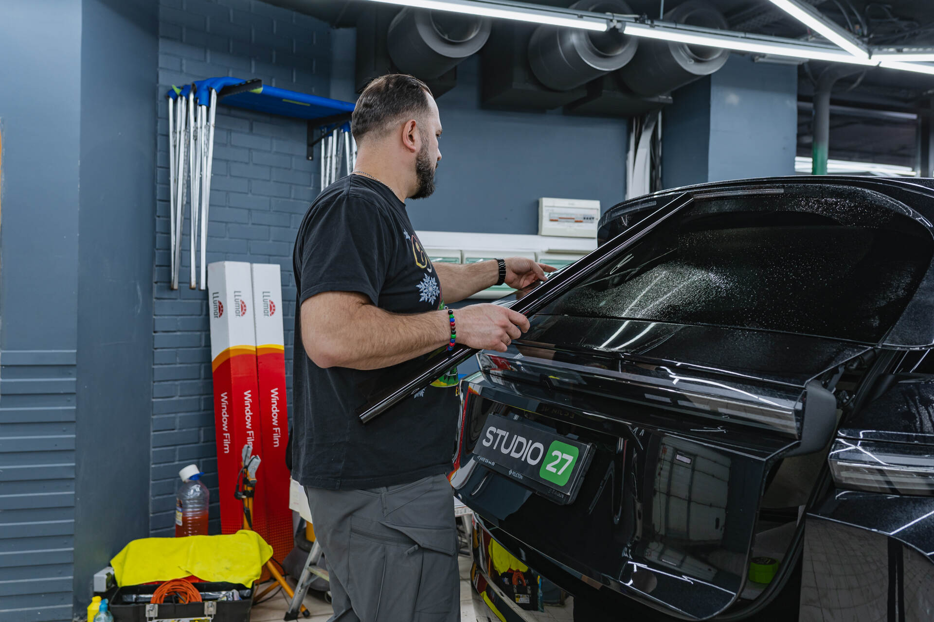 Премиальная американская пленка LLumar требует профессионального подхода, поэтому ее монтаж невозможен в кустарных условиях. Тонировка задних стёкол Lixiang L7 2025 — процесс небыстрый: подготовка и нанесение плёнки занимают минимум три часа. Сначала мастера раскраивают материал и придают ему нужную форму, идеально подгоняя изгибы с внешней стороны стекол. Мы настоятельно советуем выбирать именно высококлассные тонировочные покрытия для личного авто, так как они гарантируют эстетическую безупречность и износостойкость на протяжении долгих лет. Использование фирменной оригинальной плёнки защищает владельца от необходимости переделывать работу, обеспечивая долговечный результат.