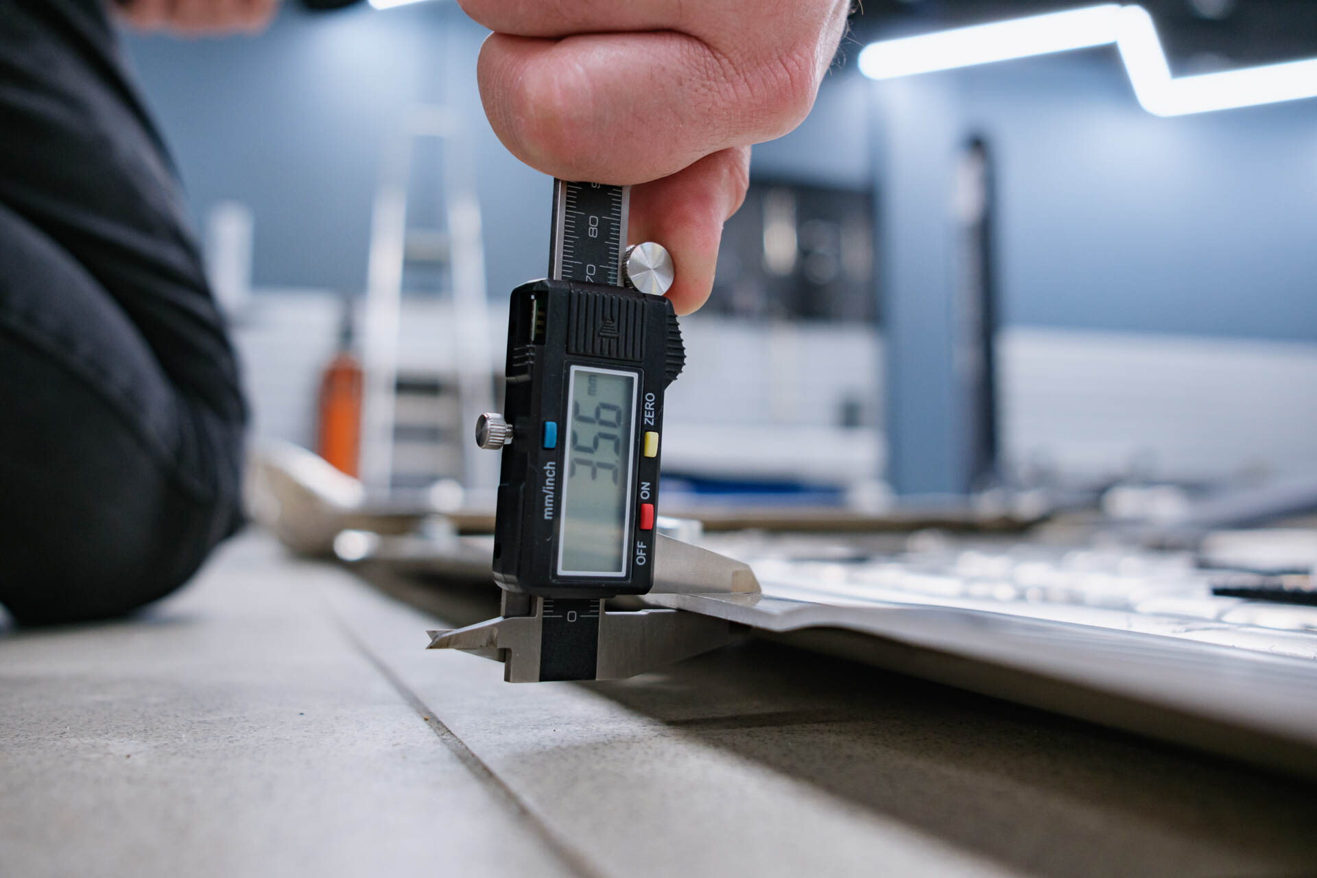 Распаковка металлической защиты днища и замер ее толщины (3.5 мм)