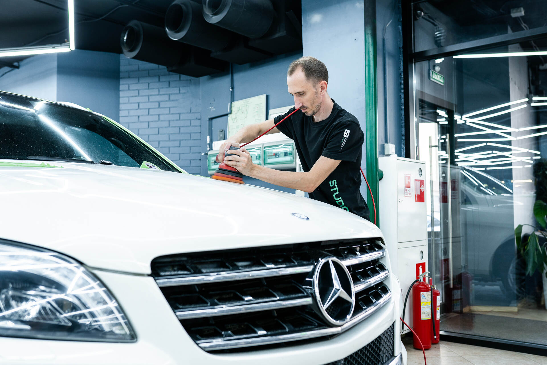 Хотите знать, как придать блеск кузову автомобиля, и чтобы сохранить его на длительное время? Рассказываем на данной странице! Наш детейлинг-центр обеспечивает комплексный подход к обслуживанию автомобилей, предоставляя профессиональную полировку кузова с последующим нанесением керамического покрытия. Именно такую услугу выбрал владелец Mercedes-Benz ML166, стремясь не только восстановить идеальный блеск белоснежного кузова, но и обеспечить долгосрочную защиту лакокрасочного покрытия. Особенность керамического состава заключается в его основе из диоксида кремния. При нанесении этот компонент образует тончайший прозрачный слой, который после затвердевания приобретает свойства высокопрочного стекла. Именно за эти исключительные качества специалисты часто называют нанокерамику «жидким стеклом», поскольку она формирует на поверхности кузова невидимый, но чрезвычайно устойчивый защитный барьер.