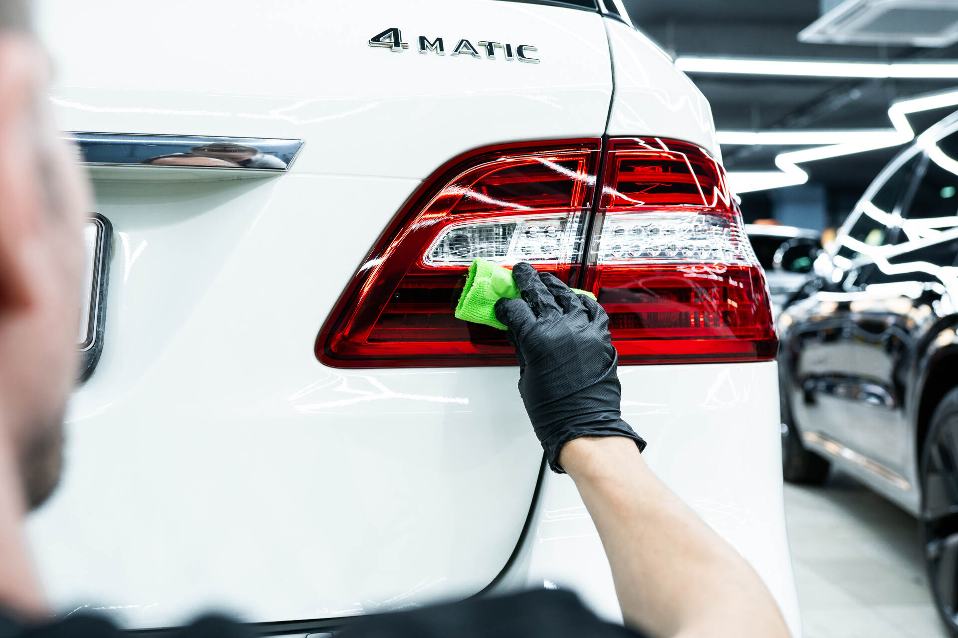 После полировки мы наносим на Mercedes-Benz ML166 керамическое покрытие, обогащенное диоксидом титана. Этот компонент значительно повышает термостойкость поверхности и обеспечивает эффективную защиту от грязи, дорожных реагентов и ультрафиолетового излучения. Другие активные вещества состава формируют прочный защитный слой, предотвращающий окисление лакокрасочного покрытия и усиливая устойчивость к абразивным воздействиям, одновременно создавая гидрофобный эффект. Однако наиболее впечатляющим становится визуальное преображение: контраст между состоянием кузова до и после обработки неизменно восхищает наших клиентов. Поверхность начинает играть многогранными бликами, обретая глубину и насыщенность, недостижимые при стандартной полировке. Светоотражение кардинально меняется, подчеркивая безупречное состояние каждого элемента кузова, что особенно заметно на белом автомобиле.