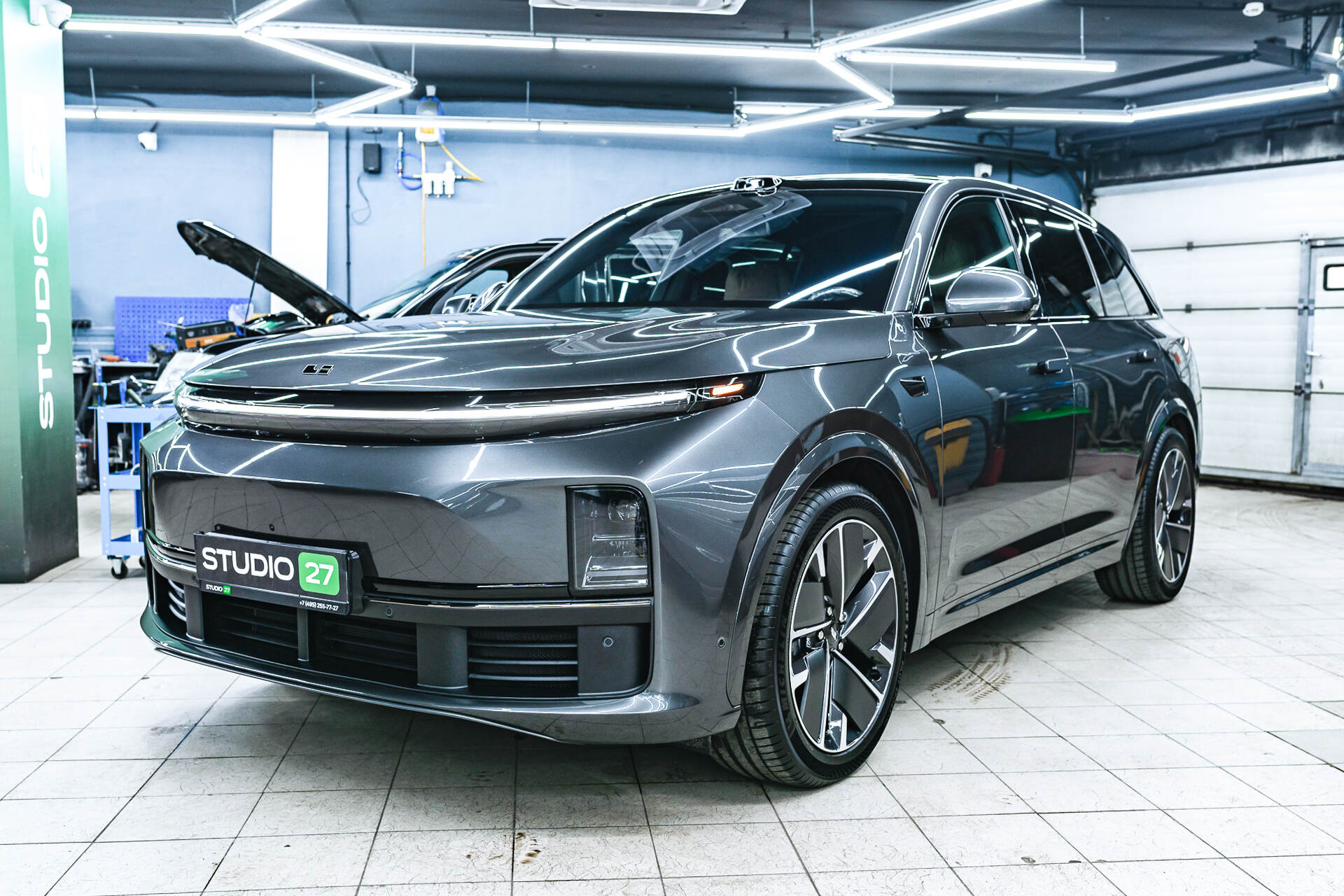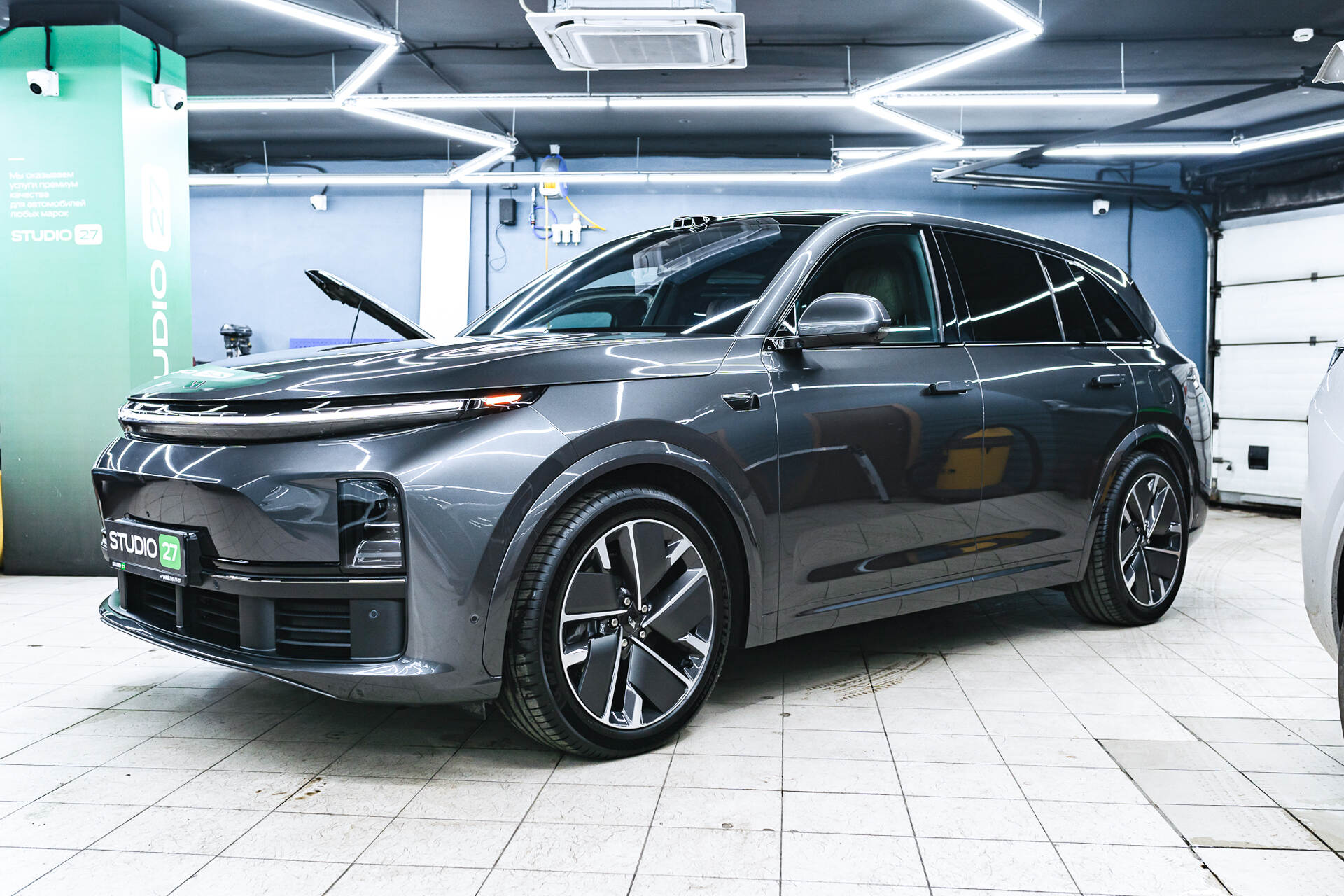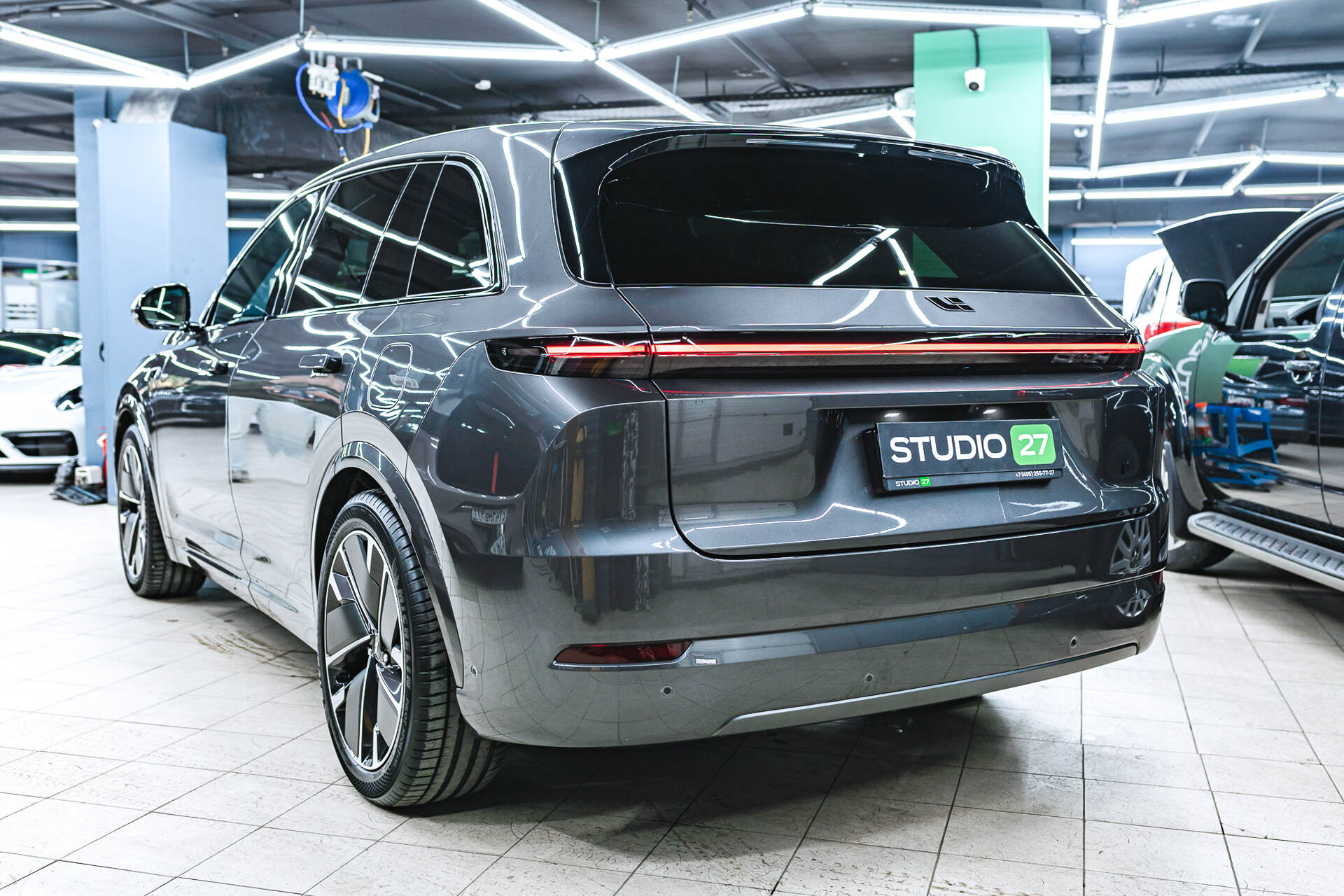 Дополнительно мы также произвели полный антихром всех внешних элементов кузова Lixiang L7, окрасив все возможные элементы в чёрный глянец, что, безусловно, выглядит намного солидней и интересней штатного хромированного варианта, который довольно-таки быстро терял свою заводскую привлекательность и облезал от воздействия влаги и дорожных реагентов.