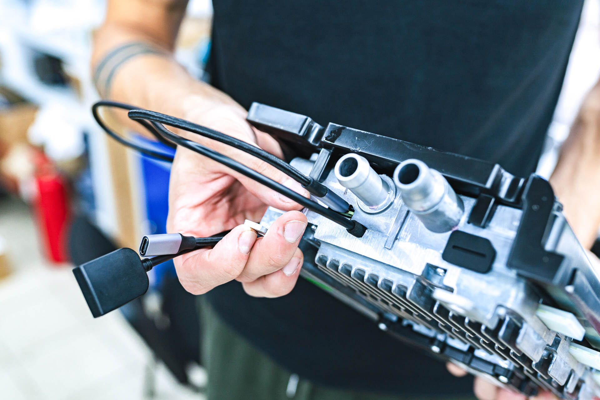 После впайки двухсимочного модуля в телематический блок производится его сборка и установка на штатное место автомобиля с подключением к системе охлаждения. Завершающим этапом становится полная сборка салона с восстановлением всех демонтированных элементов. На следующем этапе выполняется программная настройка интернет-соединения для Lixiang L7. Мы активируем пакет приложений Carmods, подключаем мастер-аккаунт производителя, после чего становятся доступны все онлайн-функции: навигация, стриминг, обновление программного обеспечения и другие сервисы на центральном дисплее. Дополнительно мы устанавливаем в телематический блок специальный удлинитель с портом Type-C. Это конструктивное решение позволяет в будущем обновлять или обслуживать модуль без необходимости разбора салонной обивки, существенно упрощая последующее техническое обслуживание системы.